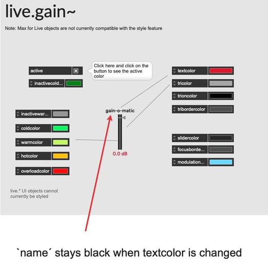 You're right, the text color of [live.gain~], that seems to be a new bug.