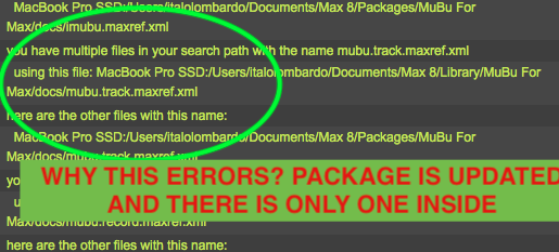 Mubu folder: if I remove it, I don't have the yellow messages anymore, but why I have to remove it?...it's like all the other packages I have, (and I have all of them, only one is a older 32bit one...) but they don't give errors, and this Mubu Package is always updated (vers 1.2.1 I guess)... All that's strange, and doesn't happened in the 8.1.5 version...then there should be some bugs...or unwanted changes.
