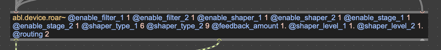 I am creating a patch with an abl.device.roar and I specify the default behaviour with attributes in the object.