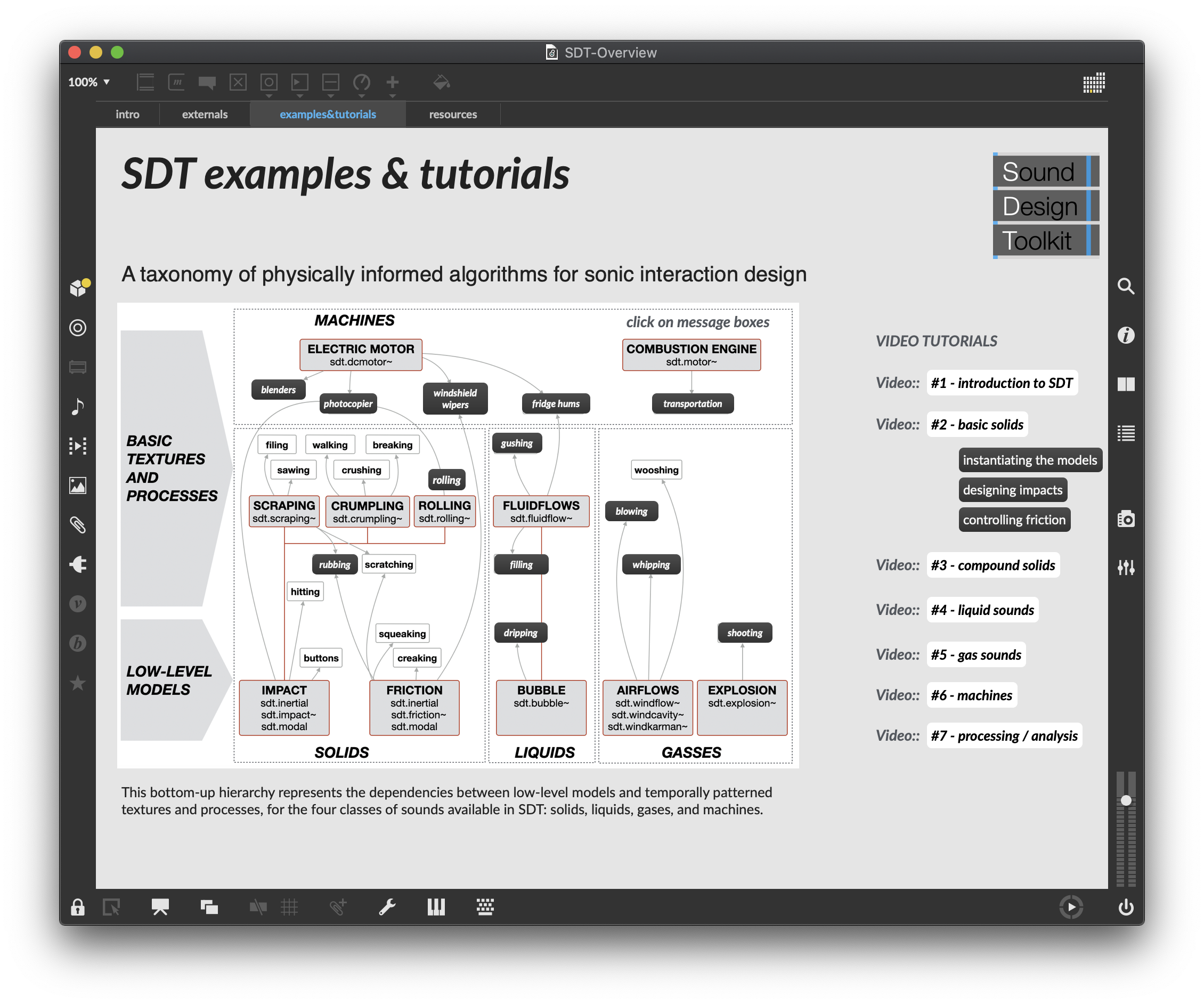 There are over 25 externals included in the package for physical-modeling synthesis, analysis, and processing.