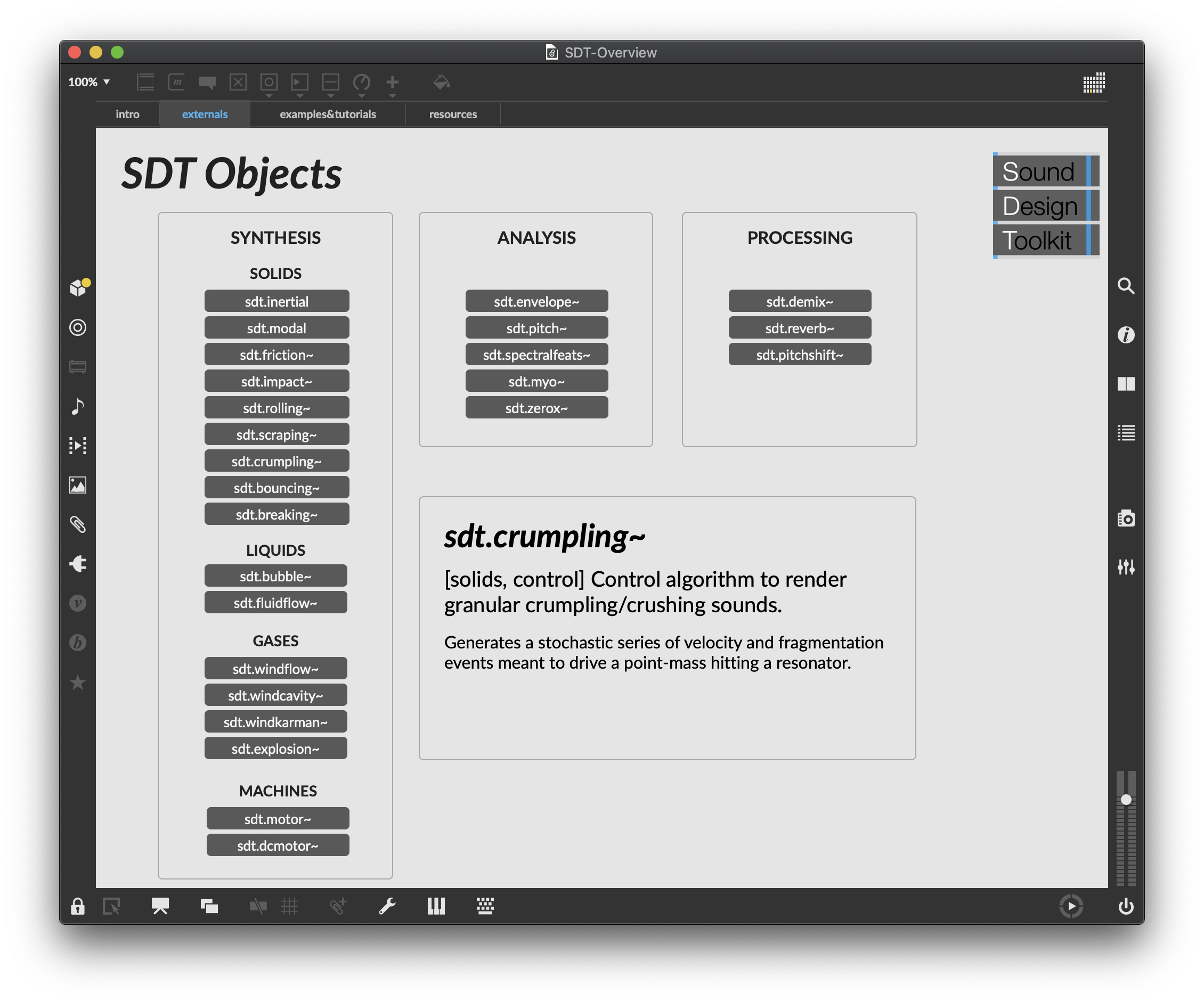 I'm pleased to announce a new package now available on the Max Package Manager — the Sound Design Toolkit by Stefano Delle Monache, Stefano Baldan, Stefano Papetti, and Marco Tiraboschi.