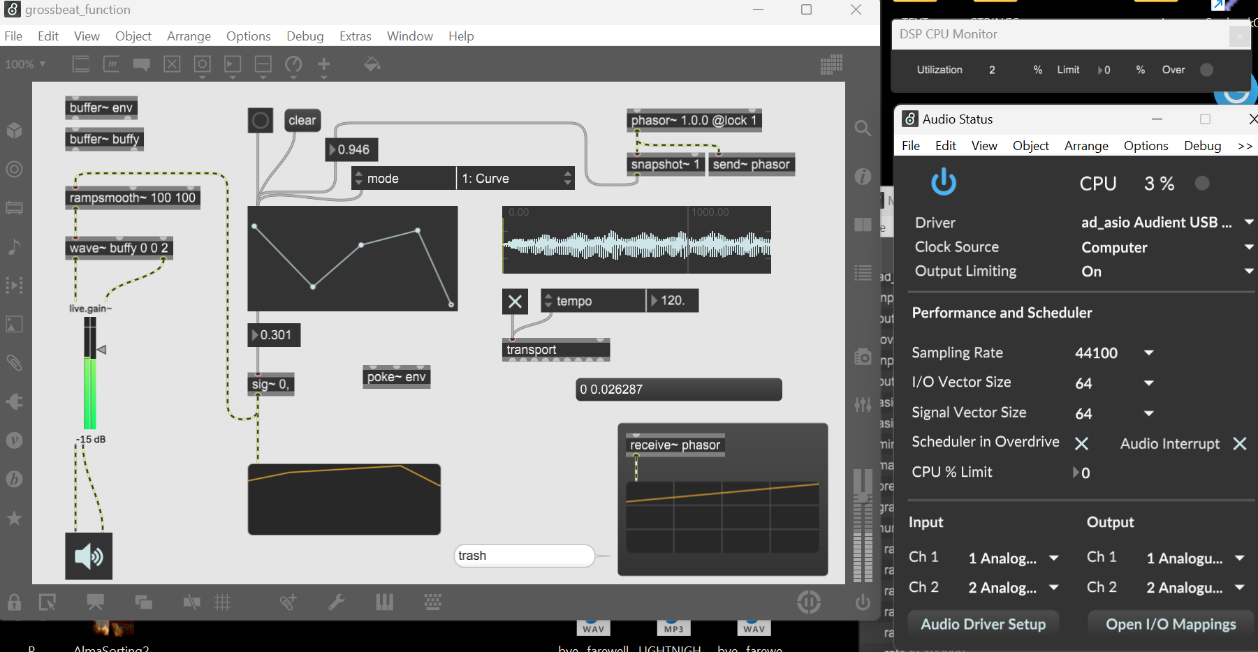 Have a relatively simple patch, but when I turn off Audio Interrupt the patch starts to glitch and eventually turns off. Before that I made patches on Mac and haven't met this problem. So I checked on Mac the same patch and there were no signs of glitches even without Audio Interface.