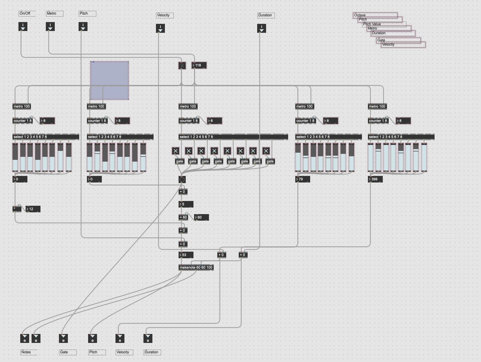 I created a sequencer with several inlets and outlets and made a presentation for it to be easily usable.