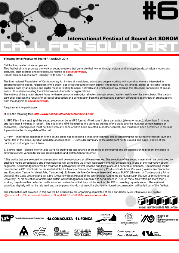CALL FOR SOUND ART// CONVOCATORIA SONOM 2014: