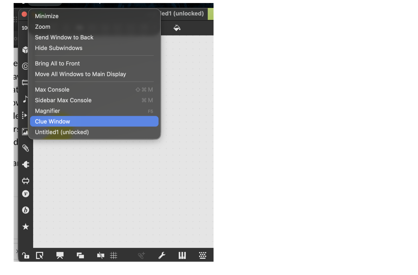 I've recently got Max 9.1.1 and I'm going through the tutorials. When I come to the mouse drawing tutorial it mentions what sounds like a useful tool: "Clue Window". The tutorial states that this can be started by selecting "Clue Window" from the "Window" menu. However, when I look at the Window menu at the top of the patcher there is no entry titled "Clue Window"! Has this either been removed or moved to somewhere else in version 9.1.1? Note that I've tried this on both a Windows 11 PC and a MacOS 15 laptop and can not find it on either.