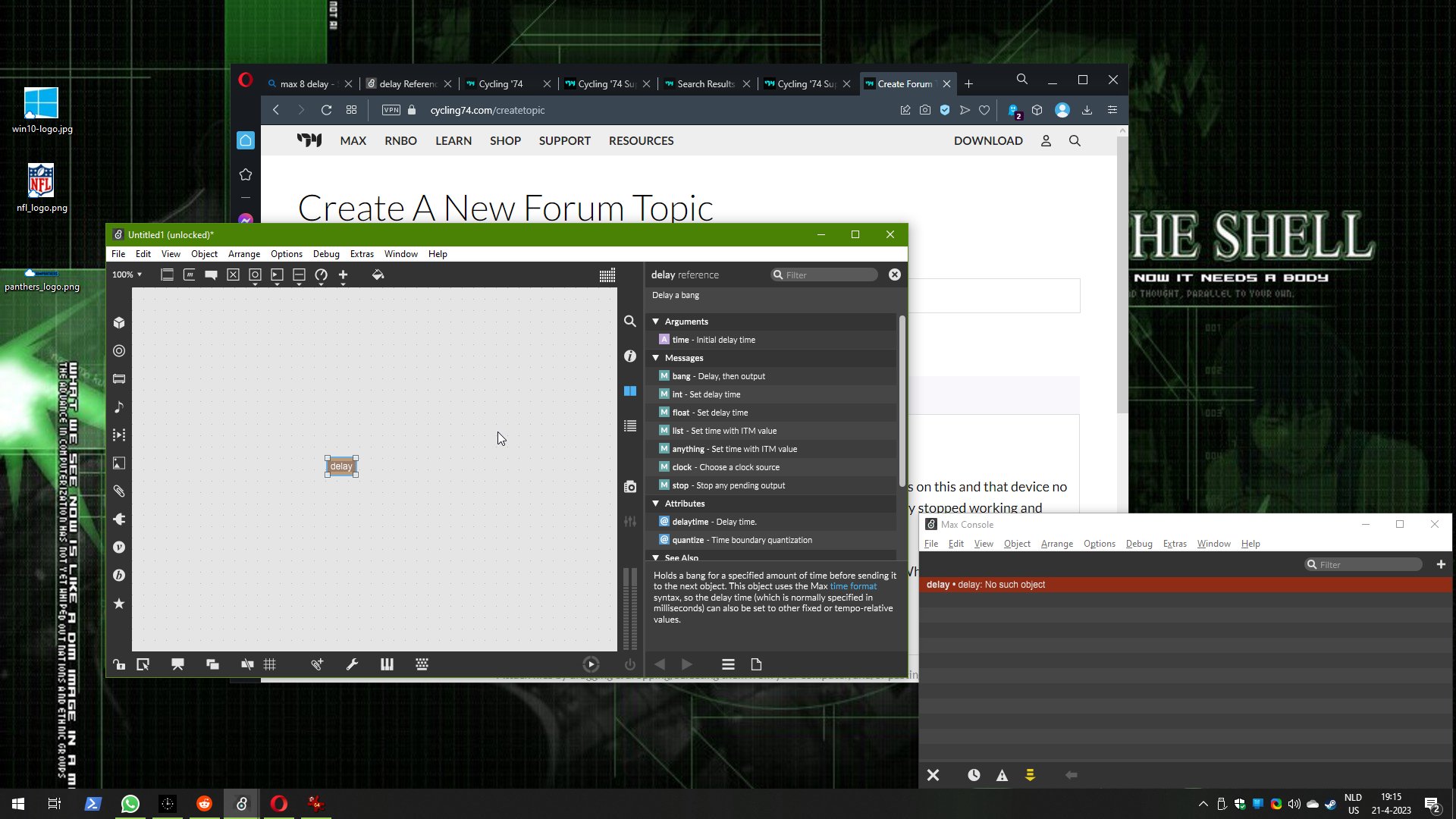 ah(i forgot to mention: there's also the possibility, because 'del' is a shorthand for the 'delay' object, you might have also had something called 'del' somewhere, but might not have even been your own doing, could've been any kind of cross-installation mixup... no biggie now, you got it sorted), glad to hear you figured it out.
