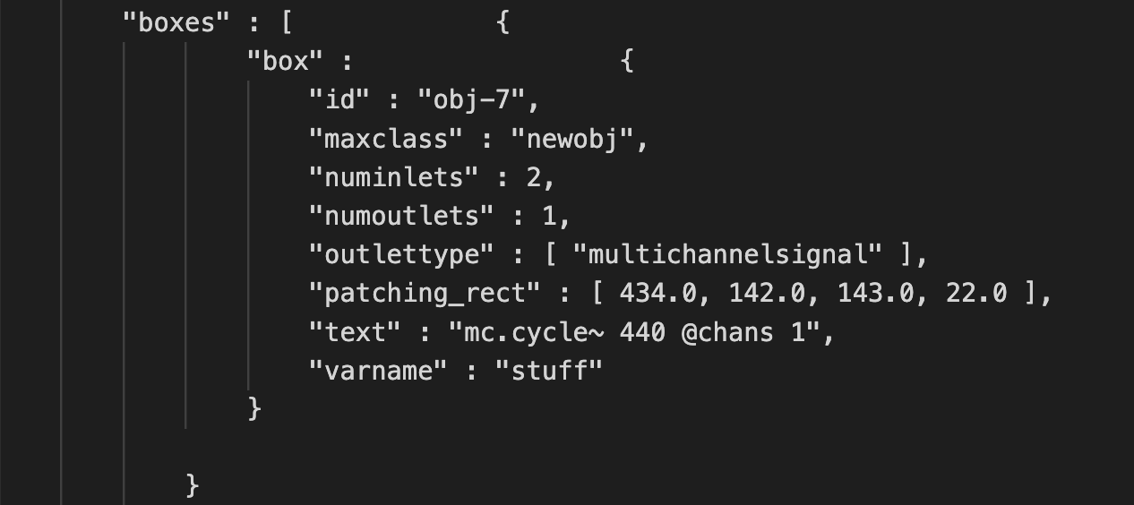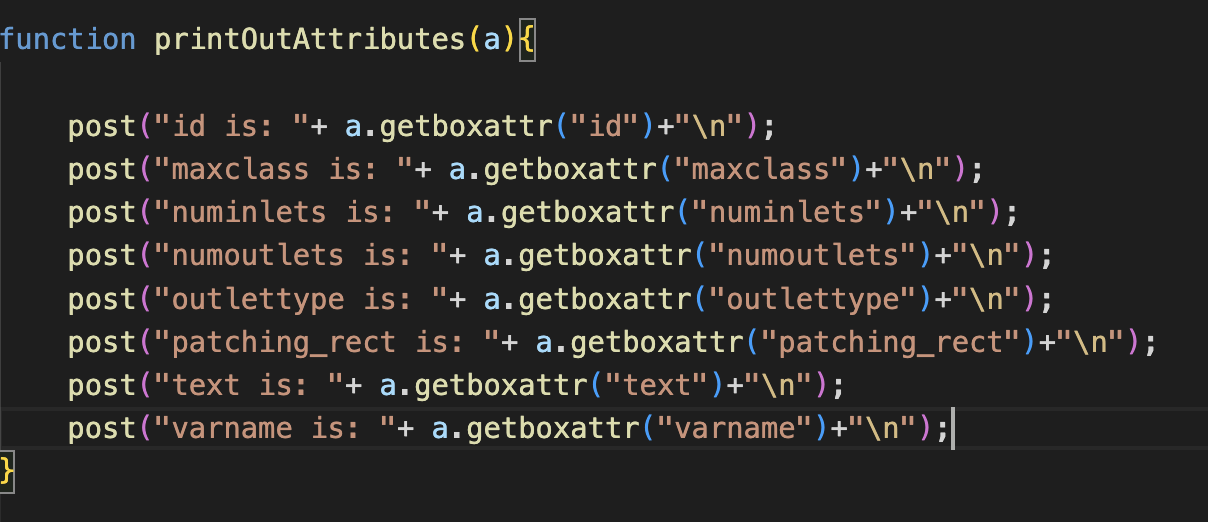Hey, I'm trying to get an objects text into javascript. By looking at the .maxpat file of a test project I discovered the following attributes of my MaxObj of interest: