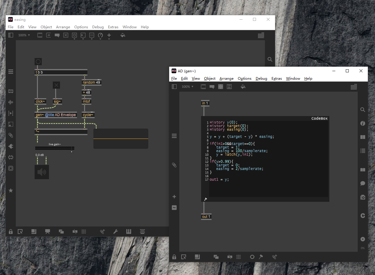 I've written an AD Envelope in CodeBox, which essentially functions as a smoothing/easing effect. However, when I try to recreate this using built-in Gen objects, I just can't seem to get it right. Could anyone help me figure this out?