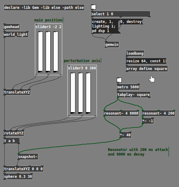 But I suspect there's probably some other method. What is eluding me is that, in Gem, you control the order in which transformations are applied (this is good and bad -- it's good that the order is explicit, but also confusing when you have to reverse some of the transformations), whereas in Jitter, @position and @rotateXYZ just "exist" (which is more intuitive initially).