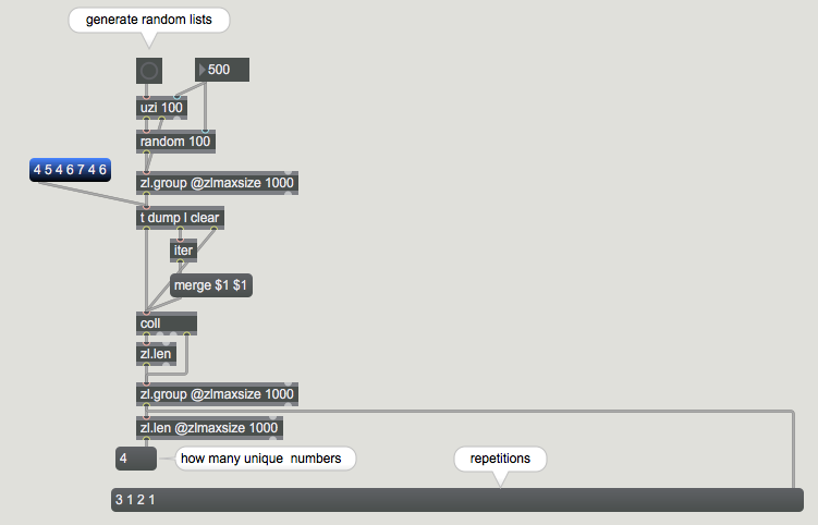and I would like an output that tells me how many times the different values appear. It doesn’t matter which values they are — I’m only interested in how many occurrences there are. I don’t know the input values in advance, nor the size of the list.
