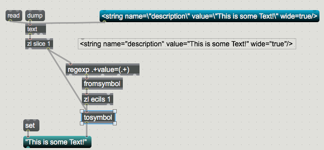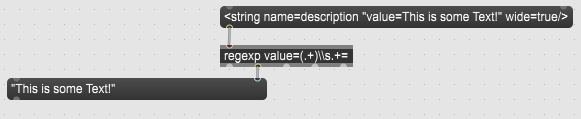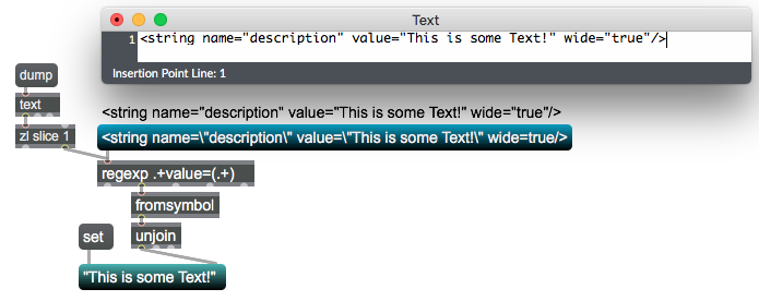 <string name=description "value=This is some Text!" wide=true/>As you can see, some of the quotation marks are missing, others are moved. Why does Max do that? And is there a better way to process the code into max unchanged?
