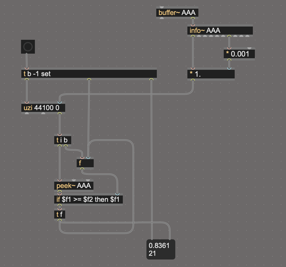 So far I tried using javascript but am getting inconsistent values. Realtime measurements are out of questios because of the way the patch works. I would appreciate if anyone can help with this because, although I am using max for 30 years, my gen coding skills are zero.