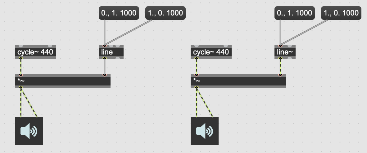 Yes, I have already done that in my project with multiple sinewaves, in the patch I uploaded I am just doing a simulation to change the value of a dial, so there is no audio signal involved and thats why I used the line object.