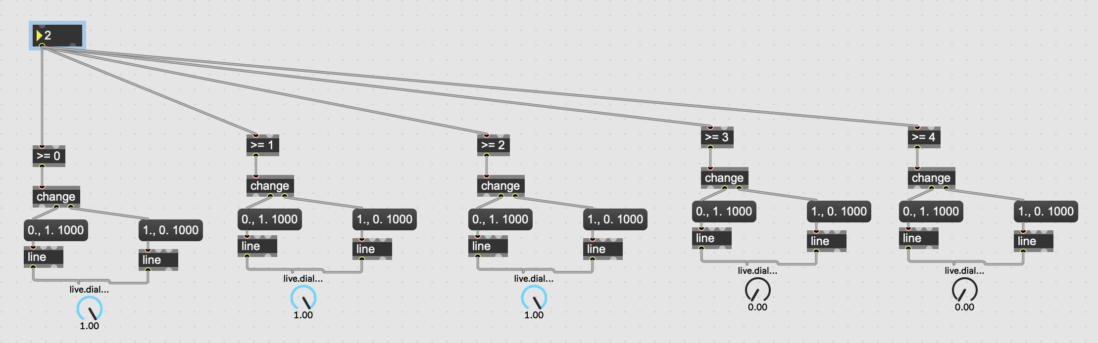 I've been working on an additive synthesis patch and I'm trying to control the volume of each sinewave based on the number of blobs appearing on a camera feed. The tricky part is that when the numbers go up or down, the bang gets retriggered. I want the volume to smoothly go up when increasing the numbers and down when decreasing, without the retriggering issue. I've attached the patch to give you a better idea of what I'm dealing with. In real-time, using a timer or delay isn't ideal since I can't predict when the number will change or in which direction.