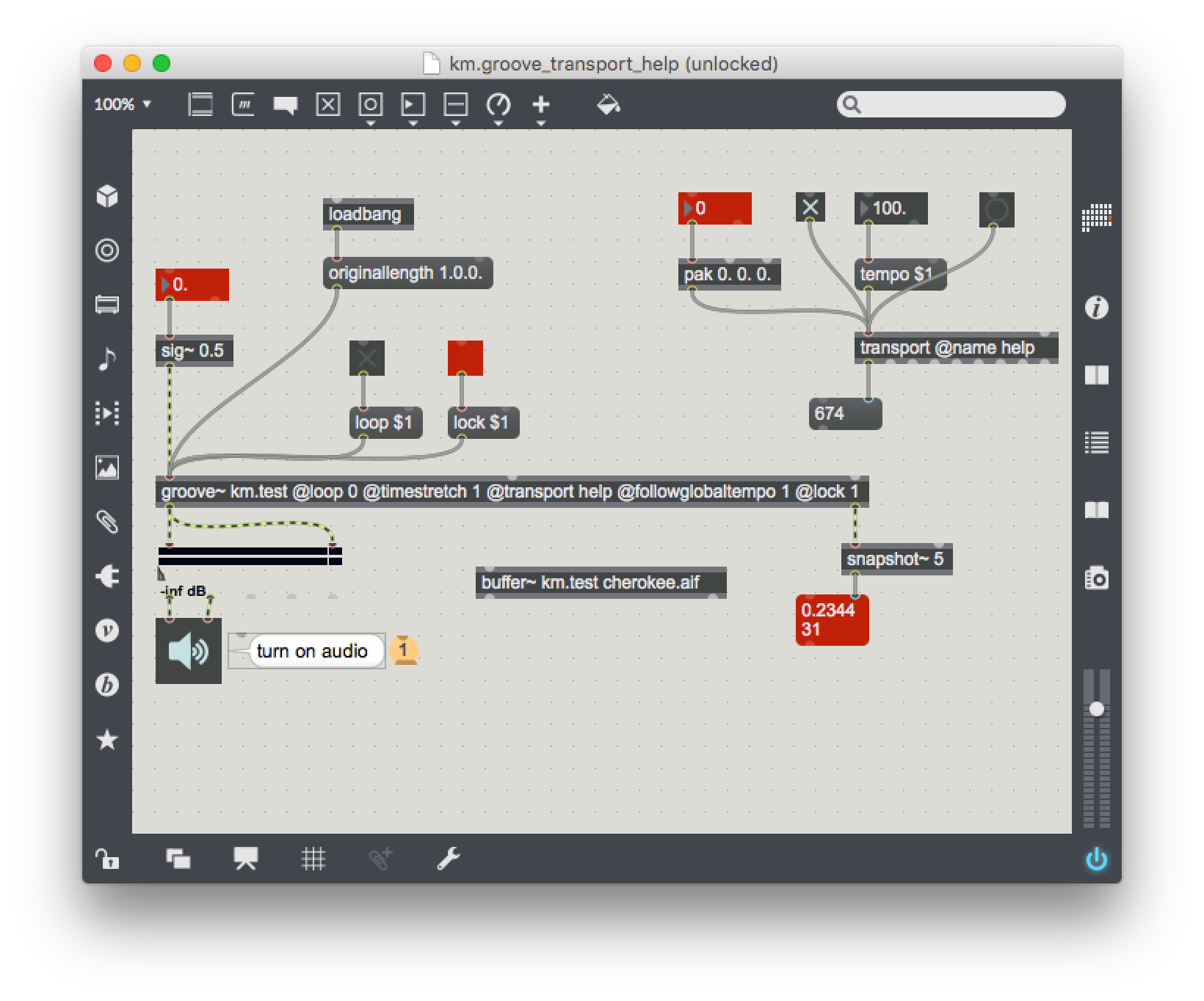 I am using the set of 'groove~' and 'transport' objects via their shared name.
