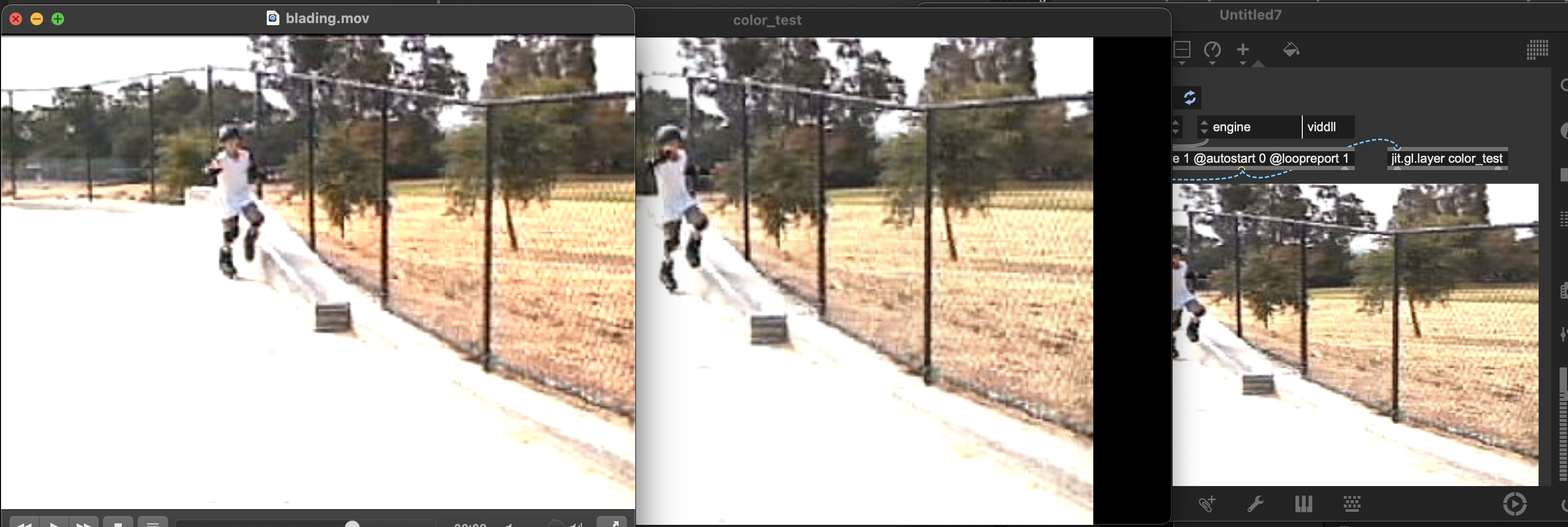 Nothing works. tried all video engines. Changed to gl2. There is definitely a lighting problem between the videos I shot, and the jit.movie player.
