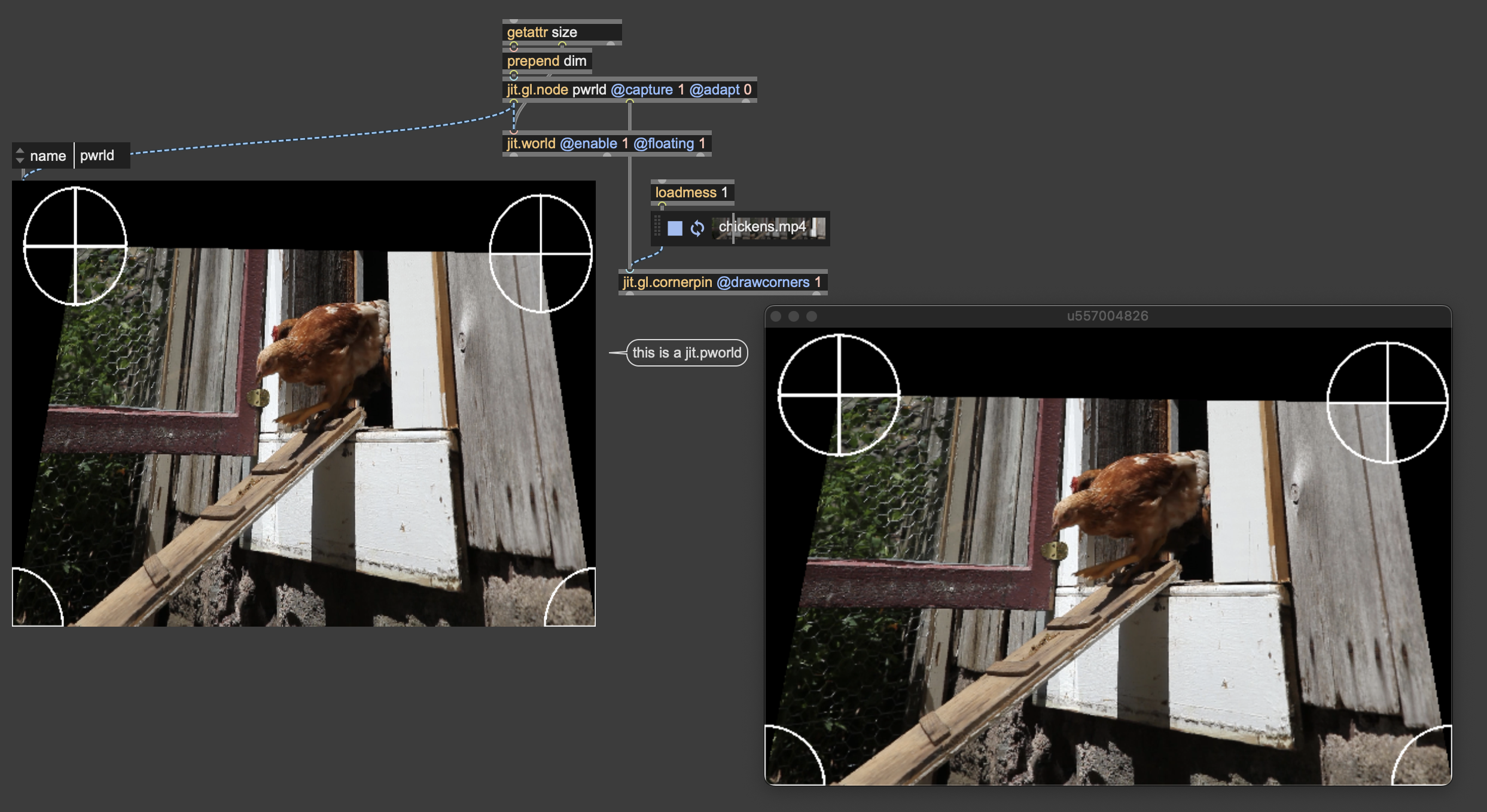 But more simply, you don't even need to create your own cornerpin and node and can use the one built in jit.world: