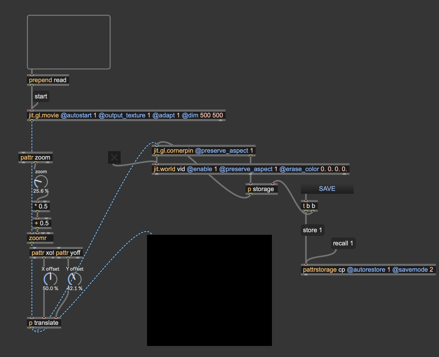 I've got this fairly simple patch, just aimed to broadcast a video with the ability to offset and resize the image.