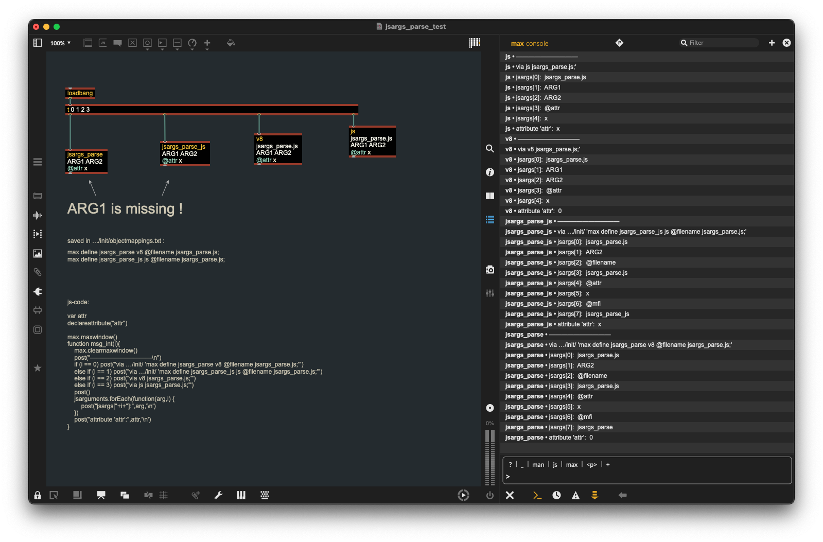 max define jsargs_parse v8 @filename jsargs_parse.js;the object is correctly created as an instance of v8 with the file loaded.