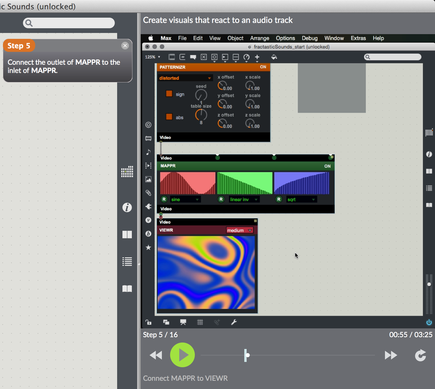 1. Fractastic Sounds, Step 5: We're told to connect the outlet of MAPPR to the inlet of MAPPR. It should connect to the inlet of VIEWR.
