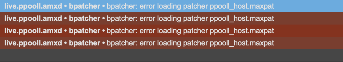 not sure exactly whats going on but in ableton when i try to open live.ppooll's environment its just a blank page and i get this message. anyone have any ideas? thanks