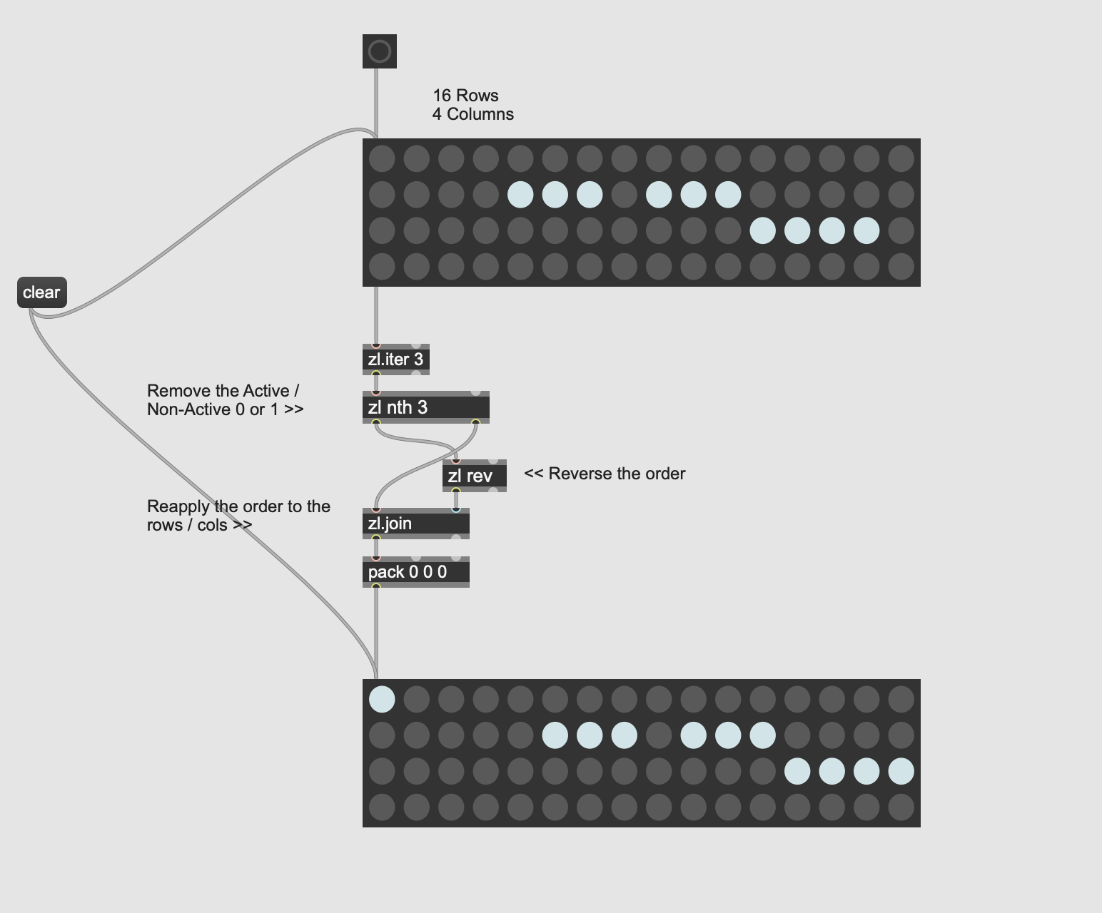 My first attempt is mirroring the entire matrixctrl but also with this same technique I want to shift all the contents over a row also up / down a column, and latest a simple shuffle all the contents.