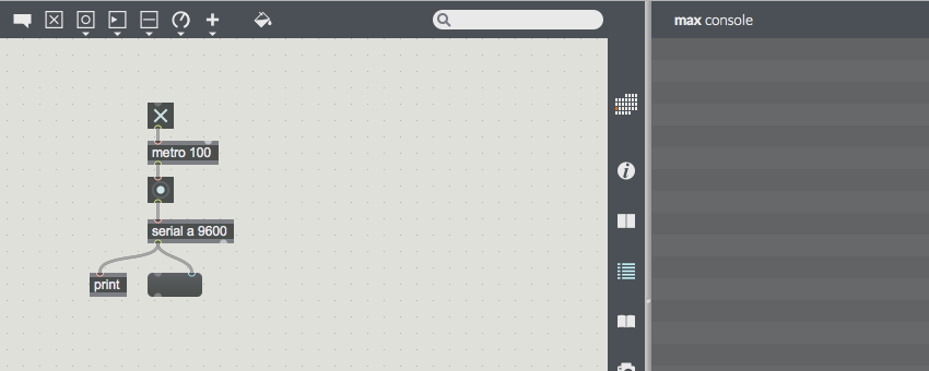 Trying and failing to get serial communication in Max 7. Can anyone help? I have an Arduino sending a stream of three columns of numbers, and want these in integer objects in Max.