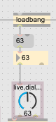 just set Inital Value in the inspector of you Dial to 63 and delete loadbang message and int