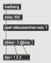"text" : "open allezusammen.wav, preload 1 allezusammen.wav, loop 1, start 1",