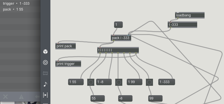 there must be something i am not seeing. in the given example i am getting -333 for the trigger, and what the pack does (e3specially to print) seems to be irrelevant. because from the viewpoint of the trigger this pack patch behaves just like a number patch would, too.