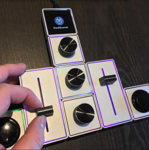 Sliders and dials are set up in MIDI CC mode and I'm using [ctlin] with [qswitch2] to filter each controller's data.