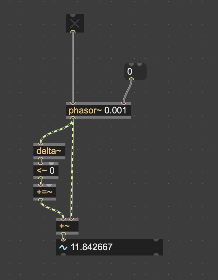 hi, I'm trying to count past 0.9999... with phasor (actually with groove~'s second output). I want to count iterations. so when the loop is at it's end, it goes from eg 0.999... to 1.000..., rather than 0.000... and I'm controlling other audio processes, so I want to do it all with tilde objects.