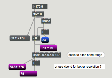 I am converting wave file to frequency using retune and frequency to midi using ftom. then playing it using makenote & noteout with pgmount. I am looking help to get all frequencies in output to it could sound more live. How can I do it?