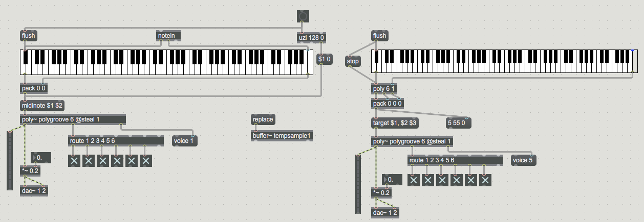 I'm having a tough time wrapping my head around poly~ after the simplicity of PD's clone. I have something working,
