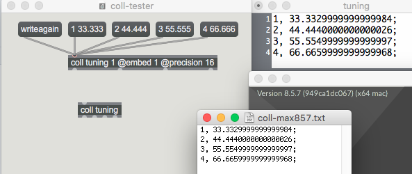 Every thing works fine until I send the coll object a write message. No file name after the write message, so it prompts me for a file, I give it a file name. I look inside the file and it is empty. I send a show message off to the coll object and it show the definition as empty. But here is the cracker: other instances of the coll object: