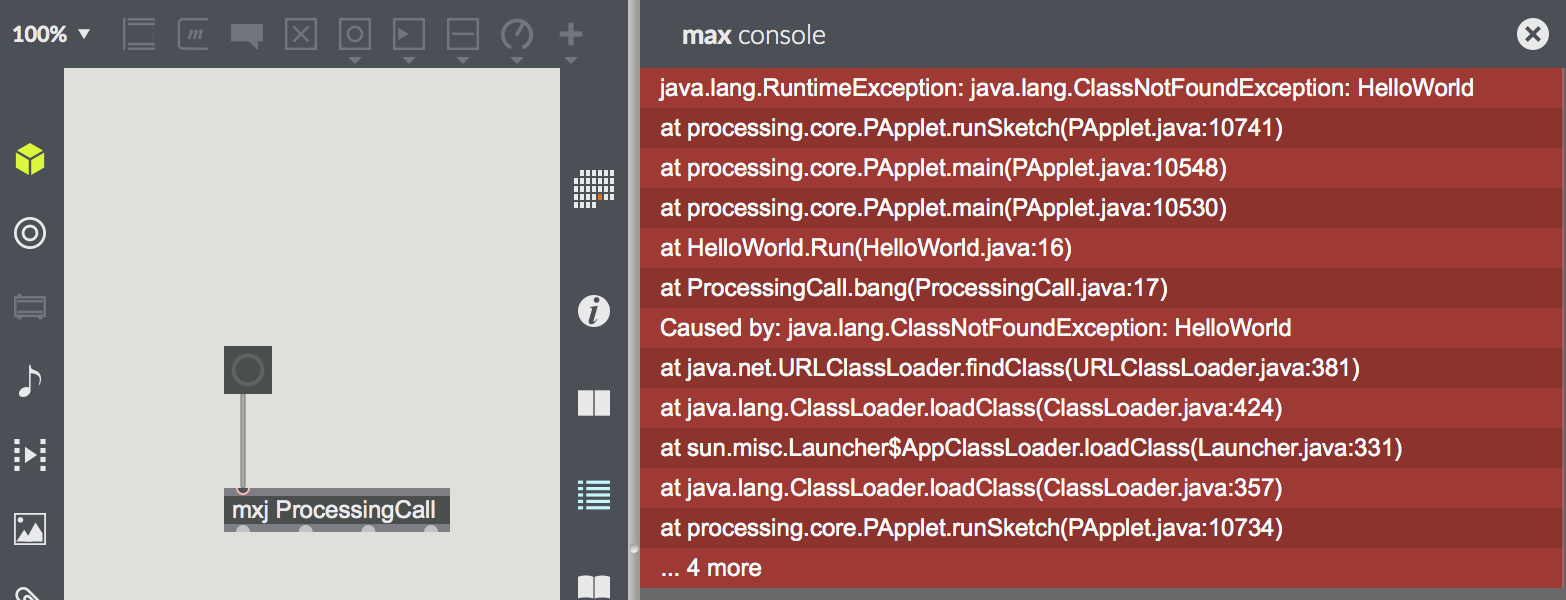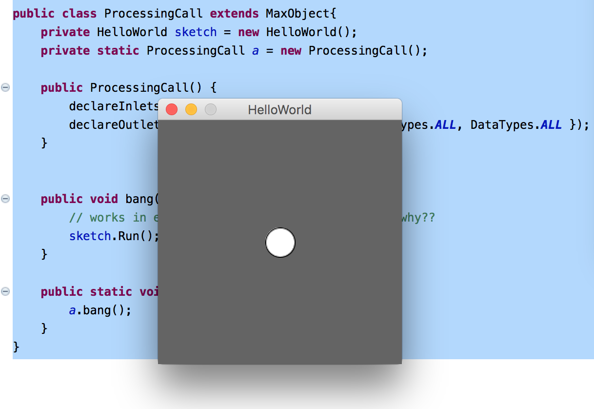 Hello! Recently I'm trying to use processing in mxj! I tried to use this one, https://github.com/markmarijnissen/processing-for-max-and-matlab It worked properly, but it is based on processing2.