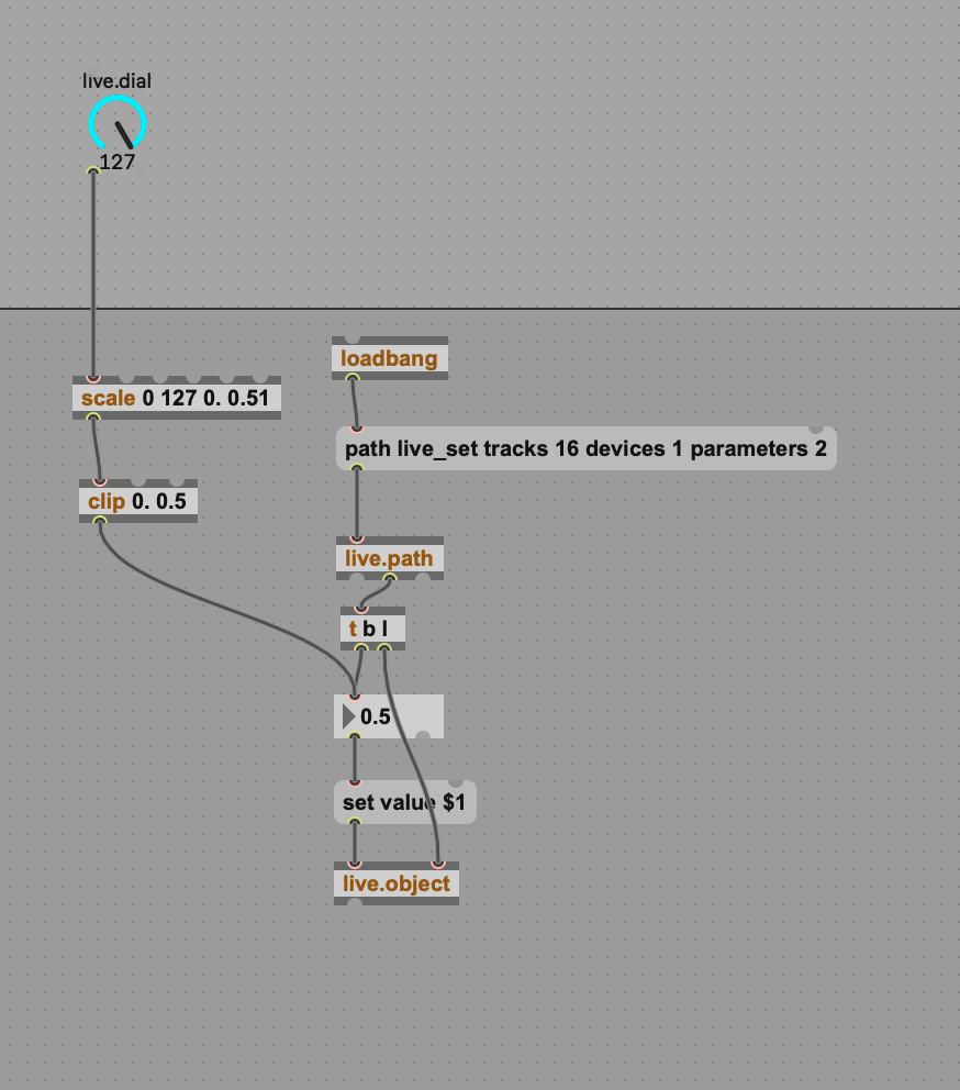 So my question is -- is there a way to put a cap on the mapped parameter's value? I don't know if this is something that requires M4L to solve, but it certainly doesn't seem to be fixable within the MIDI Mappings panel. I can just change the max value to .49 because then it will usually not come all the way up to zero.