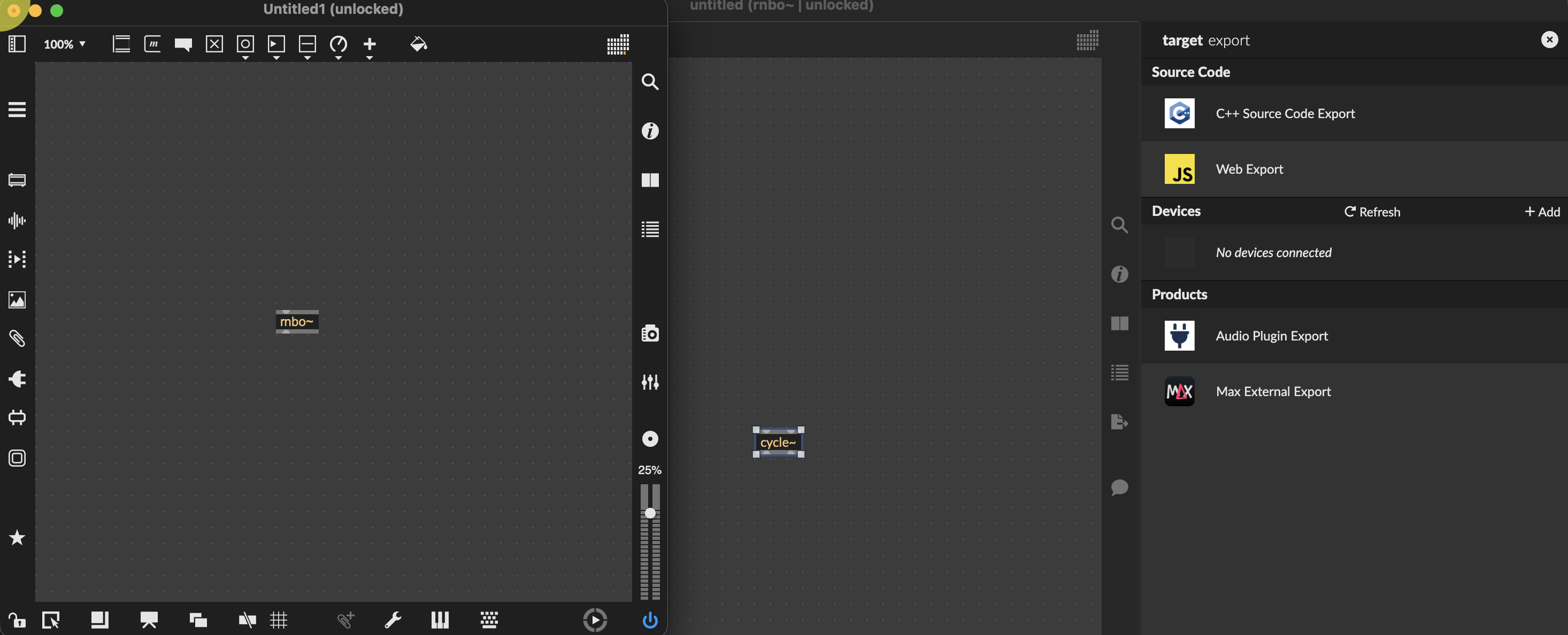 RNBO - blank target export sidebar