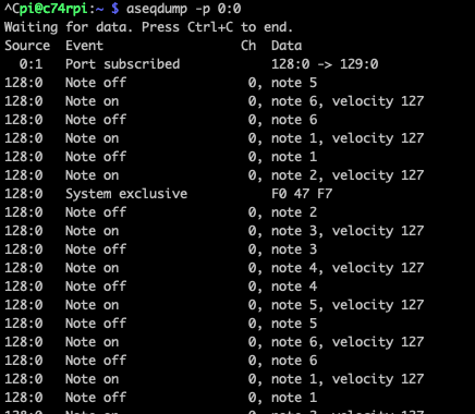 I routed it it with aconnect. And looking to output stream aseqdump -p 'port'.