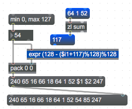 Any tips would be appreciated. I really banged my head against the wall until realized that the checksum was the issue here. is there a Max4Live method of just providing the roland checksum without having to build some sort of "if slider is 1, then $2 should be 9" type thing for all the 0...127 values?