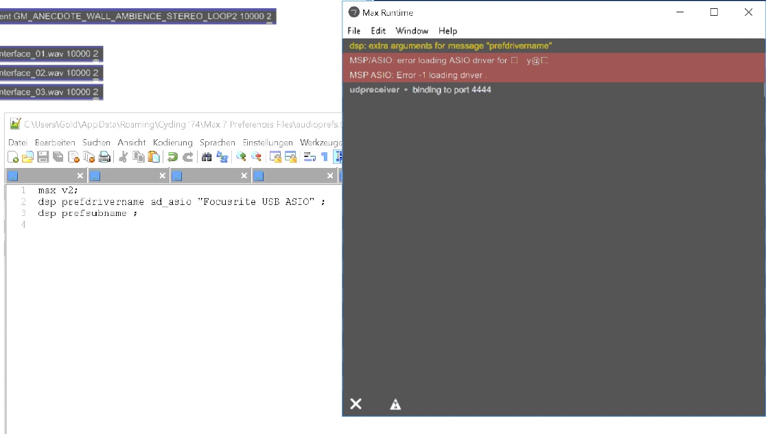 I try to set the default device of Max Runtime that is used upon start. It worked for a very long time, until the Focusrite Scarlett device was removed once from the PC.