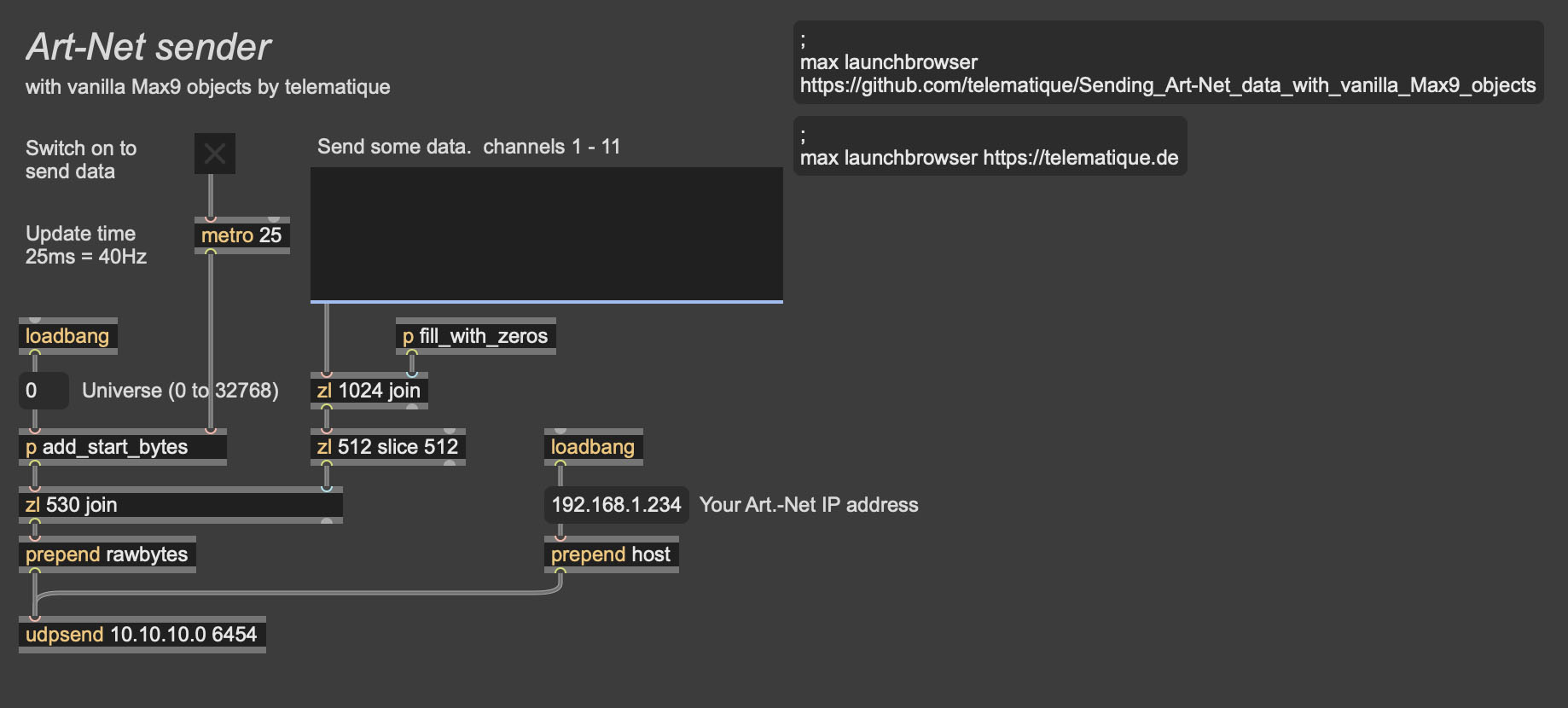 https://github.com/telematique/Sending_Art-Net_data_with_vanilla_Max9_objects