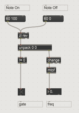 Does anybody know how to do this in MaxMsp? Apparently in the MAKENOTE object, the pitch and the note-start information can only come from the right-most Hot Inlet, so this two means (what in modular synthesis would be CV and Gate) are not separated.