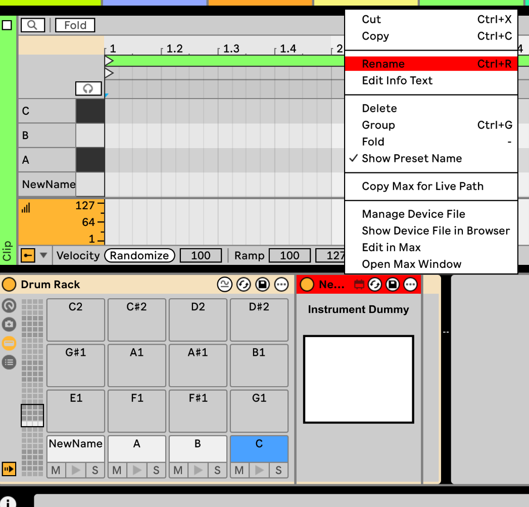 in a drum rack you can rename a instrument and the name is displayed in the piano roll. Is it possible to rename from a M4L device. Set a new title to thispatcher does not work. So is this possible?
