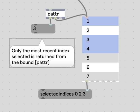 I created a patch with a chooser (with multiselect) that gets filled with items. I can select multiple items. I’d like to store this state (so the items including which ones have been selected) in a pattr so that after saving in Live, I get the same items selected when re-opening this Live set.