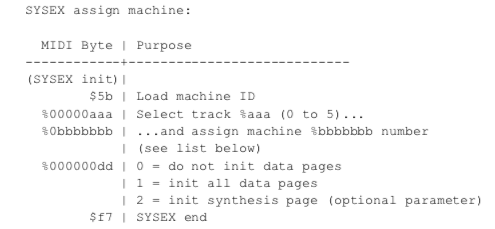 That's great. Thank you for doing that. Using this device when selecting a machine in SysEx there is no accompanying information about parameters, it's a blank machine each time. It goes back to my earlier question about not understanding the SysEx string, because the way this machine works seems to be quite different to the Machinedrum which has SysEx control for almost everything.