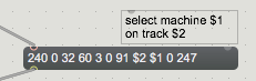 Yes, the SysEx controls 'machine' allocation on each track. Devices for creating or manipulating sound. Also, yes, my next step was to simplify, alter, CC control. The Monomachine does successfully respond to CC changes. I don't use Live either, so I'm not sure if I'm making a fundamental mistake by trying to use a Live interface in MAX. Anyway, I can't seem to get it to respond to input. I was unclear why some CCs are passed, some routed, and why these particular CCs. Anyway, thanks a lot for the help.