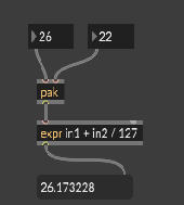 You are using <pak f f> so the div should be initialized with a float (127.) Here runs, also in rnbo.