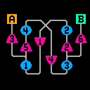 2) at the outputs 'A' and 'B'.. i can't really tell what happens beyond there... according to the diagram, they could even just be outputs left and right in stereo(?... probably not, but it's what i did in my patch below)