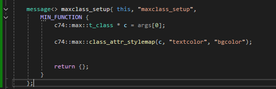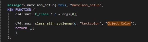It looks like the class_attr_stylemap() requires a t_class * that pertains to the present object. In Min, I have tried "this" and maxobj(). But I'm not sure how to produce the argument the function is looking for here. Any thoughts?